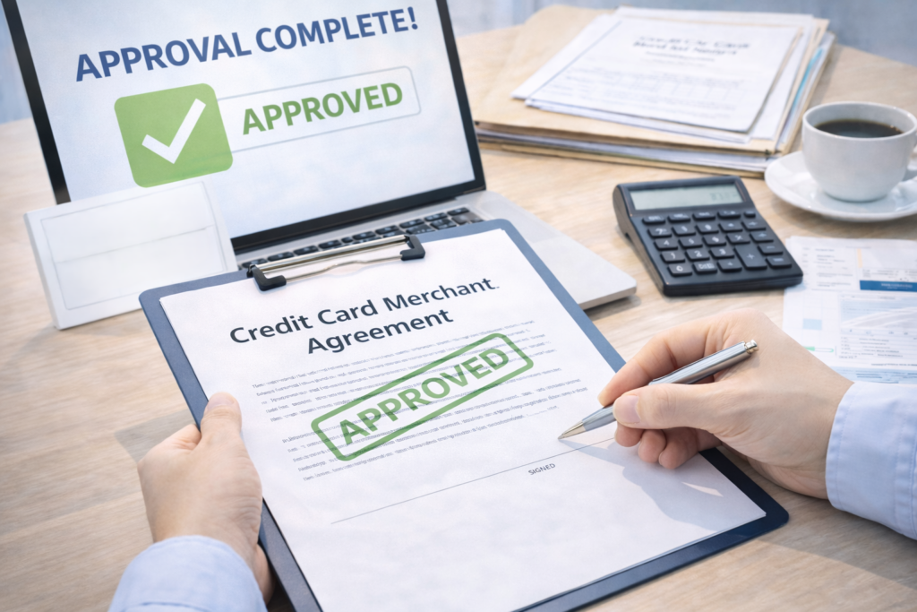 弊社指定のクレジットカード会社に加盟店申込をして頂きます。お申し込みは弊社が取次を行うので面倒な手続きは一切ありません。