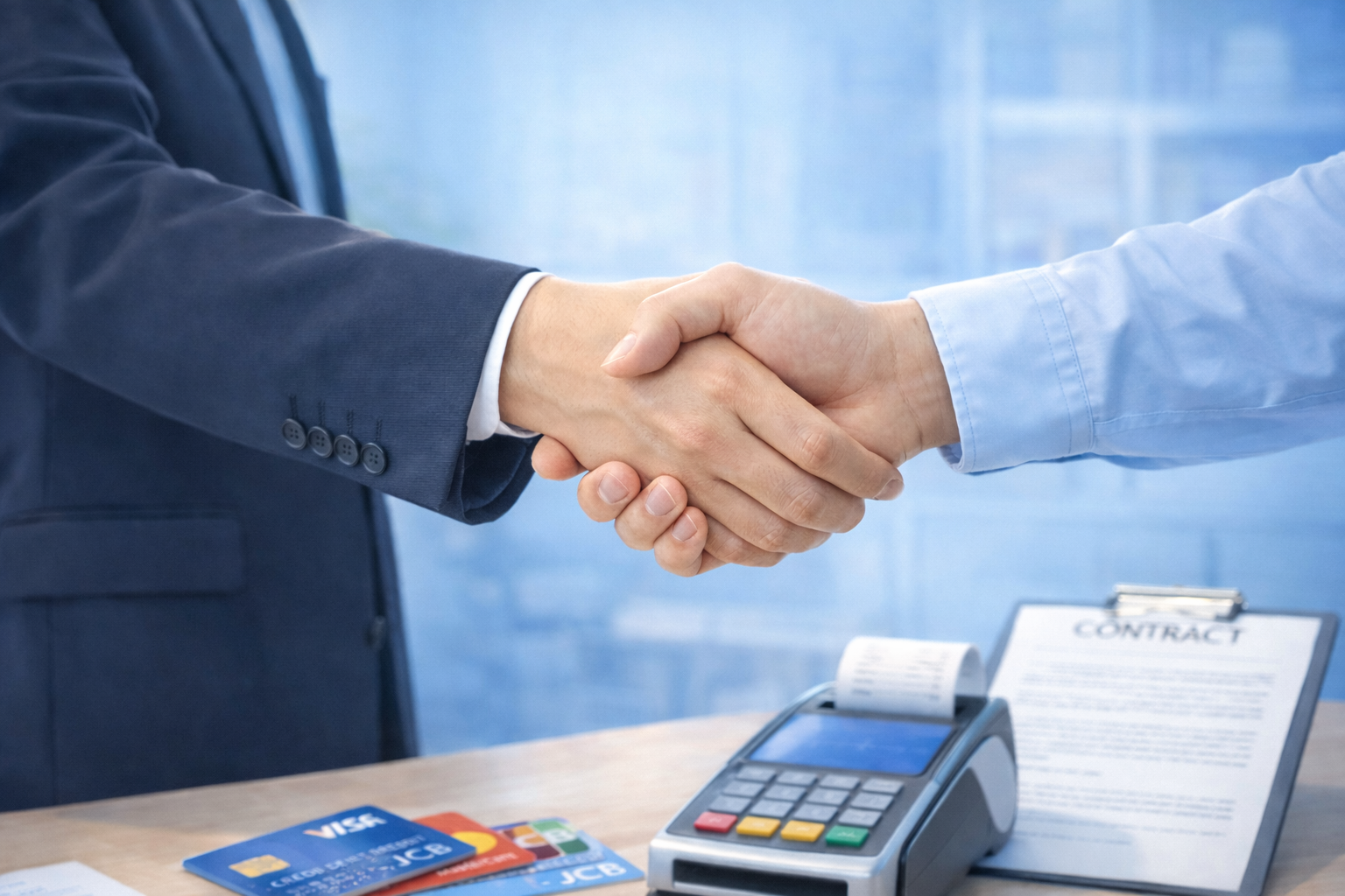 1.カード会社に対する加盟店契約の申込、加盟店契約の締結、その他これに付随する一切の合意の締結